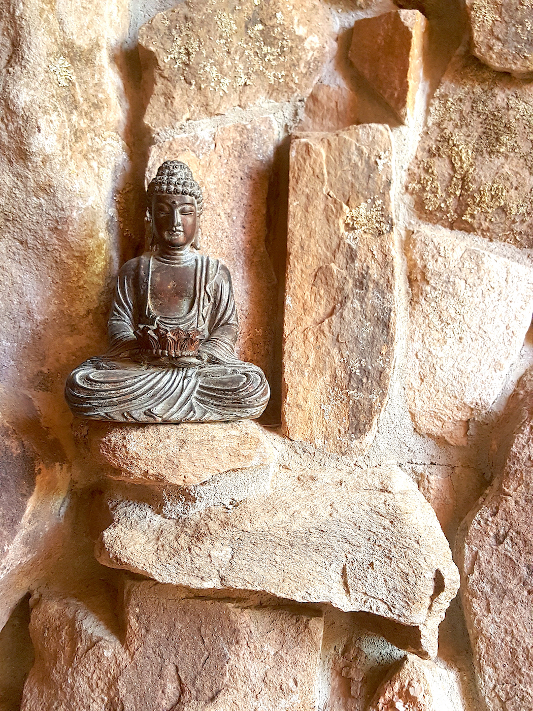 On a jutting of rock on the side of somewhere, seemingly impossible to get to, here sits Buddha. Serene. Balanced. Emanating peace. Inviting the on-looker to feel the same.