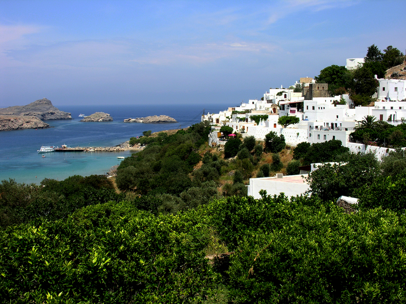 Most of the time, we see pictures and photos of the oft-visited Mykonos and Santorini, Greek Islands. In 2005, I visited Greece for the second time, this trip included the island of Rhodes. I thought this vista equally as picturesque and inviting as those I had seen of the other islands, so I shot the photograph.