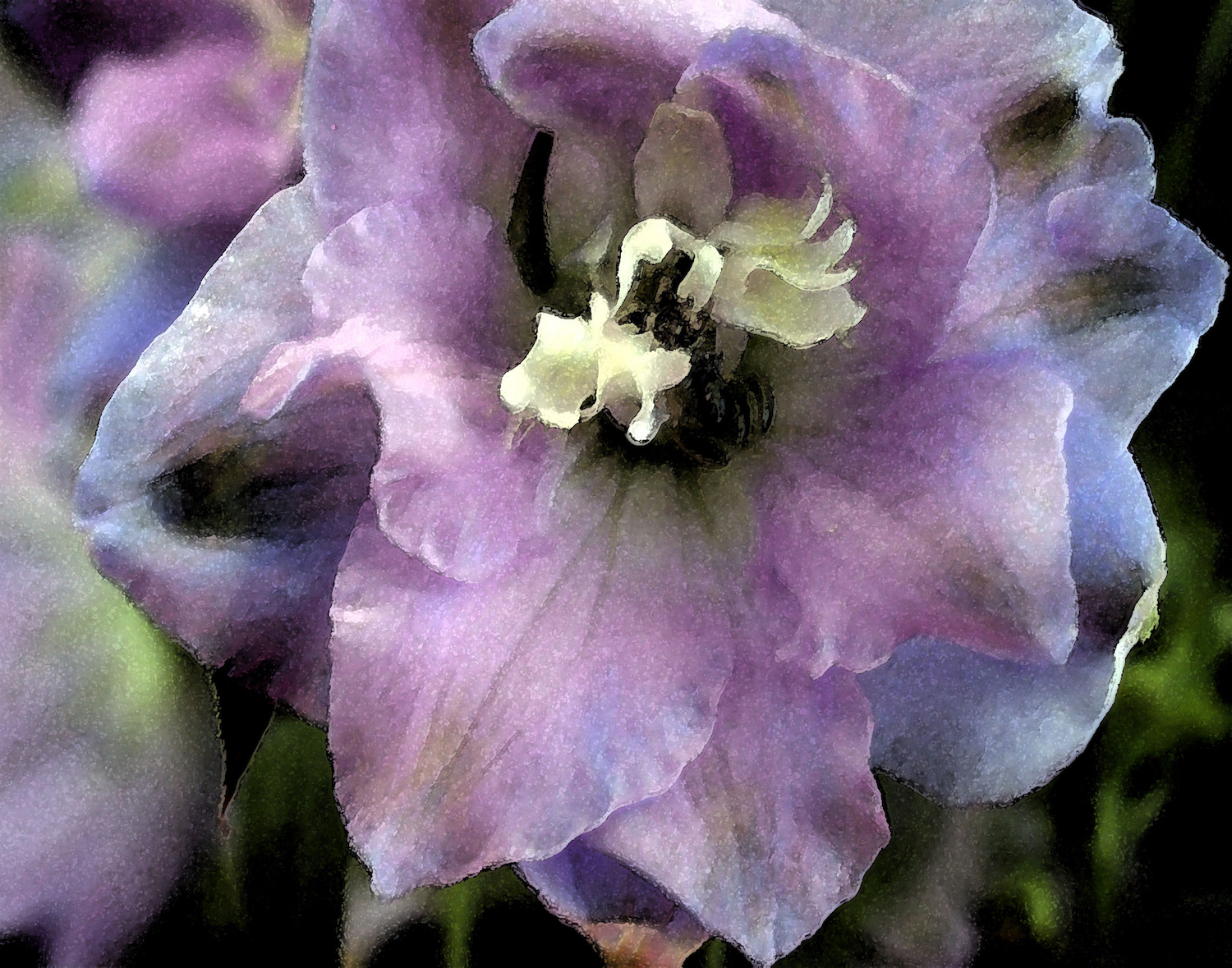 The image of this larkspur takes my thoughts to the Margaret Mitchell book, Gone With The Wind. The image, with it’s goddess-lavender color and gentle petals, is akin to the gowns I imagine the ladies wore at the balls, hence Southern Belle.