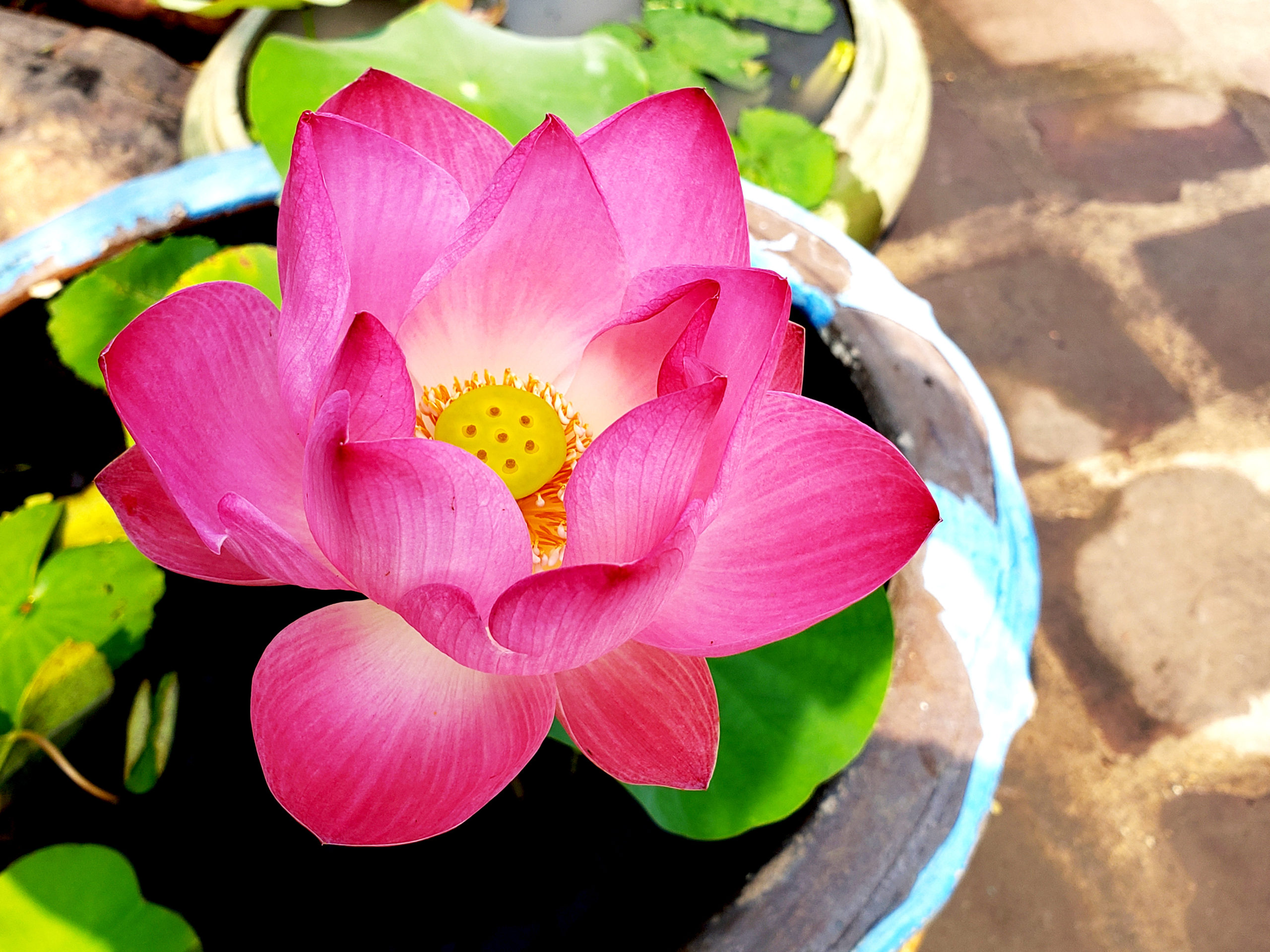 This Lotus resides in a Buddhist Temple in Bangkok, Thailand. Not far, an orange tabby cat plays with a monk, who is dressed in the traditional orange robe. The sense of gratitude for the beauty of living things permeates everything, everywhere here. I don’t want to leave. Ever.