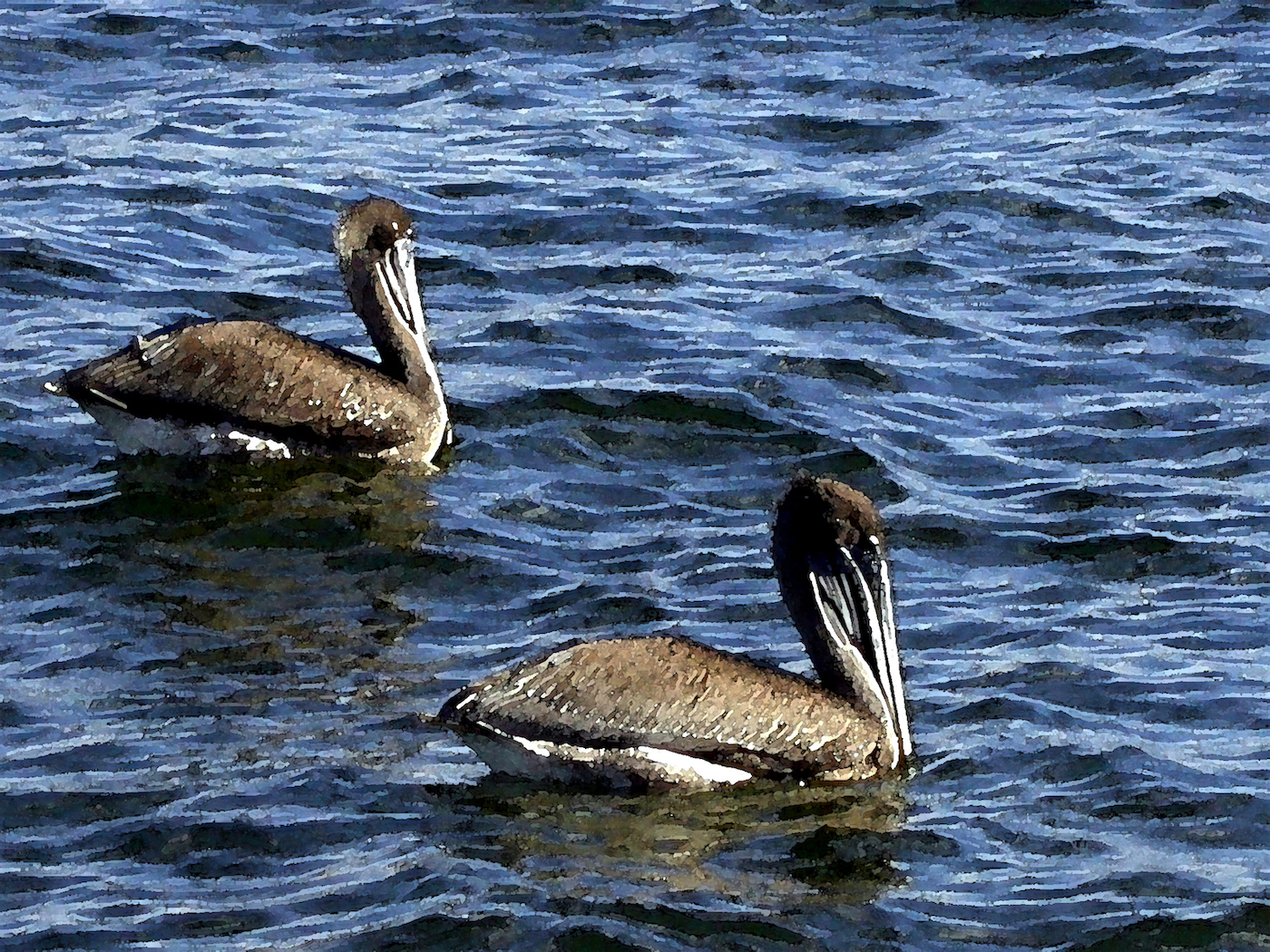 I used a relatively generic title for this image, but what I was really thinking was: are they flirting? are they woeing each other? It kinda looks that way, doesn’t it? Pelicans don’t mate for life, though they are seasonally monogamous. Next season, they may or may not couple up with the same mate, and they gather at the local mating site to choose.